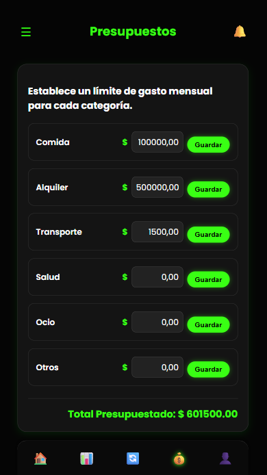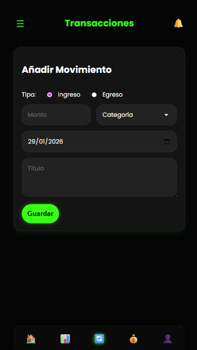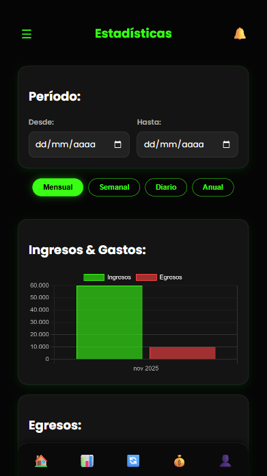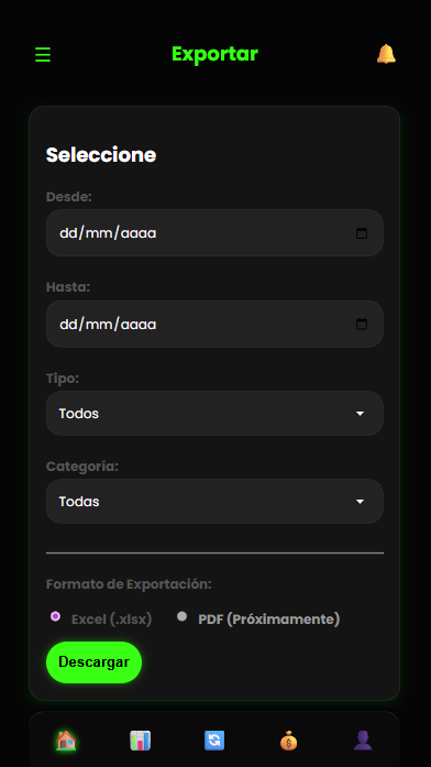 Aplicación integral para la administración de economía personal. Permite el registro de movimientos, creación de presupuestos y visualización de datos con gráficos interactivos (Chart.js). Incluye funciones de exportación a Excel y reportes detallados.
